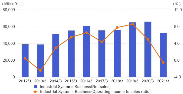 | Industrial Systems Business(Operating income to sales ratio)(%) | 0.5 | -2.4 | 3 | 5.5 | 6.6 | 4.4 | 7.8 | 8.6 | 5 | -0.5 |