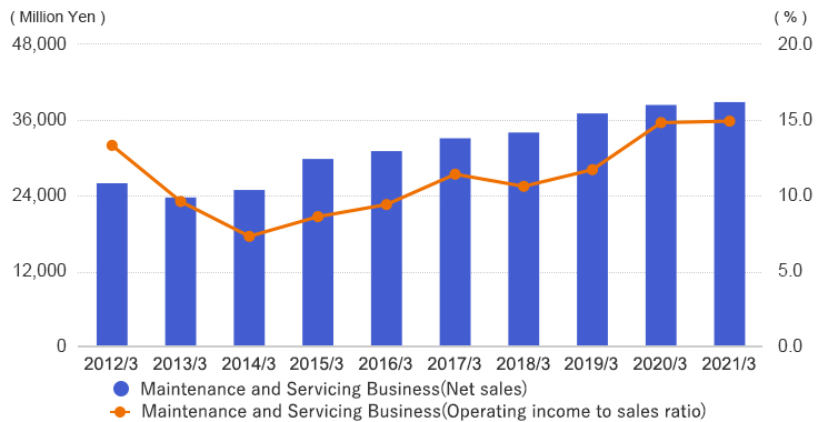 | Maintenance and Servicing Business(Operating income to sales ratio)(%) | 13.3 | 9.6 | 7.3 | 8.6 | 9.4 | 11.4 | 10.6 | 11.7 | 14.8 | 14.9 |