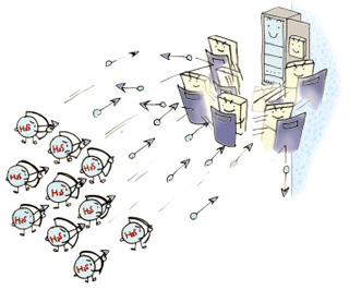 For example, as shown in the figure on the left, when operation is performed with the speed reduced by 30%. The required power can be reduced from 80% to 30%. Thus reducing energy consumption and CO2 emissions.