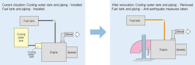 Existing facilities can also be utilized for renovation. Subsidiary facilities can be used without modifying the generator room.