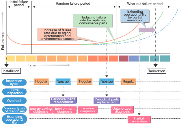 - (1)Exact inspections and appropriate parts replacements taking into account aged deterioration are possible.