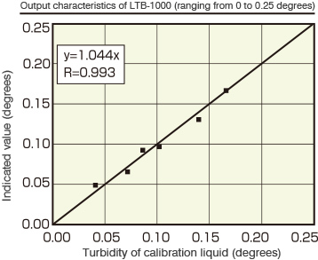 Unlike the particulate counter system, converting the number of particles into turbidity and strict control of flow rate of water sample are not required, providing high sensitivity while remaining faithful to original measurement principles.