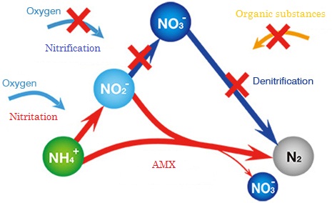 - Excess sludge … Due to slow growth rate of AMX bacteria, excess sludge can be reduced. - Space saving