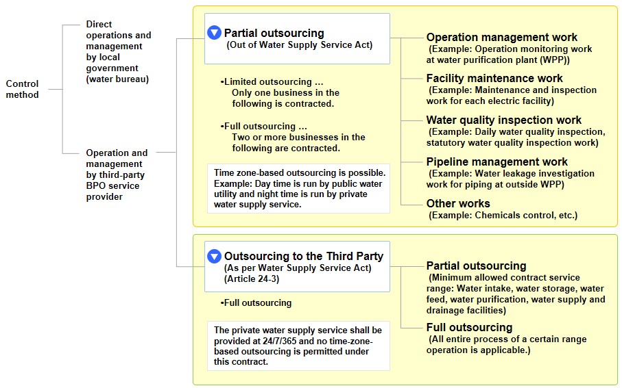 - This is an outsourcing that has been conventionally carried out under responsibility of the public water utilities.